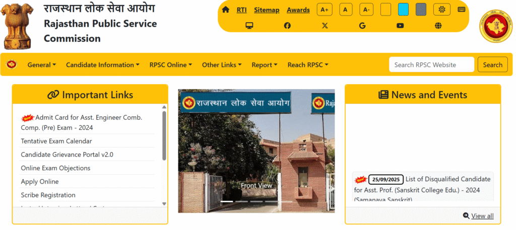 - सबसे पहले आरपीएससी की आधिकारिक वेबसाइट rpsc.rajasthan.gov.in पर जाएं।